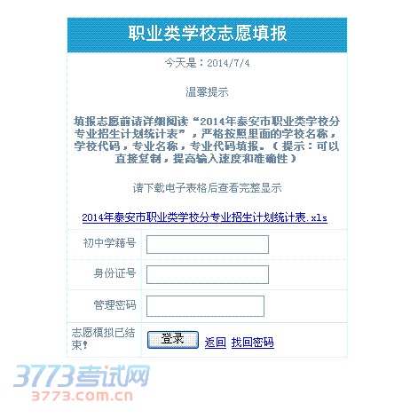 [图文]2014泰安中考职业类学校志愿填报系统入口