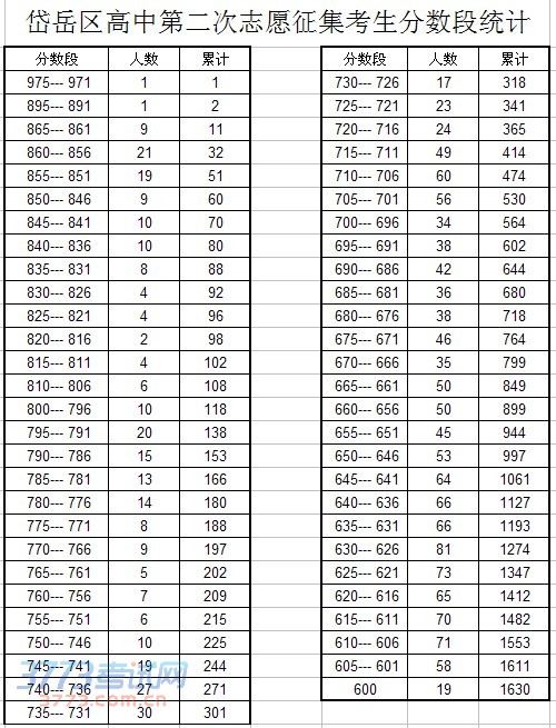 [图文]2014泰安岱岳区高中第二次志愿征集考生分数段统计