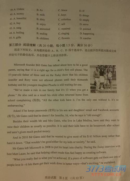 [组图]2015年泰安中考英语试题免费