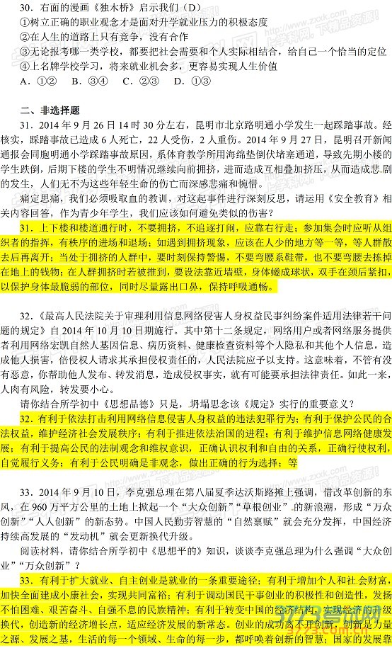 [组图]2015泰安中考思想品德试题及答案发布