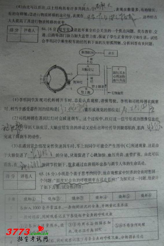 [组图]2012年泰安中考生物试题答案及评分标准