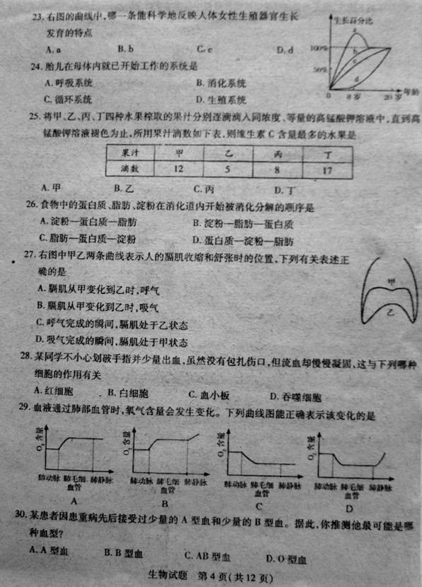 [组图]2012年泰安市中考生物试题及答案