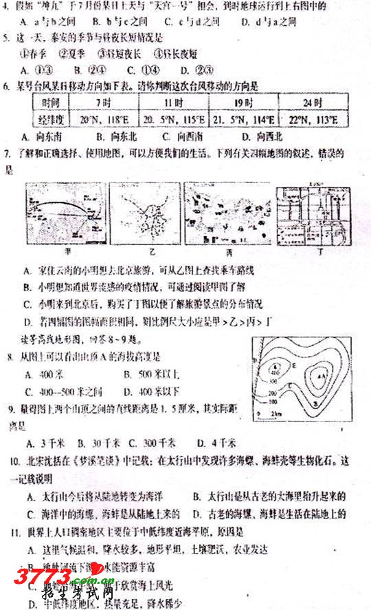 [组图]2012年泰安市中考地理试题试卷答案
