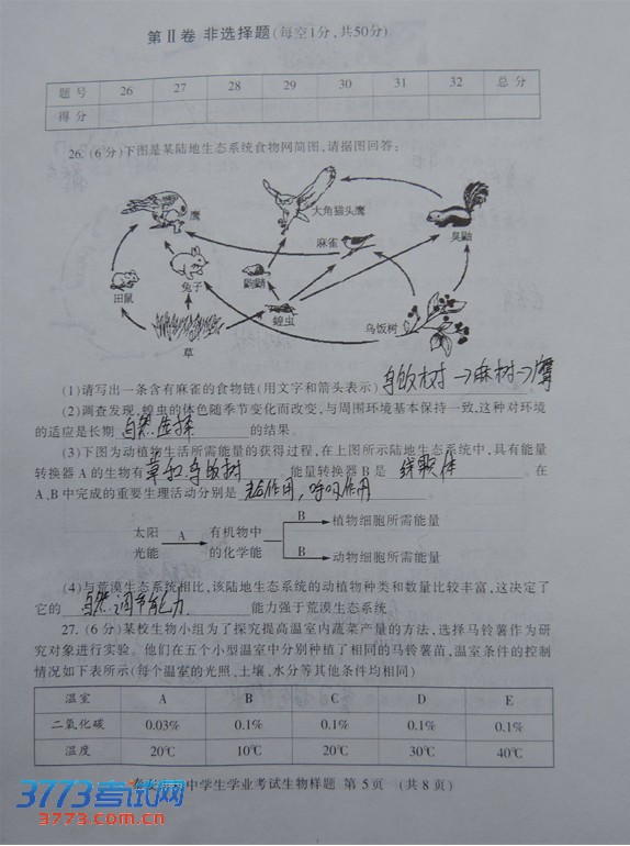 [组图]2013泰安中考生物试卷及答案发布