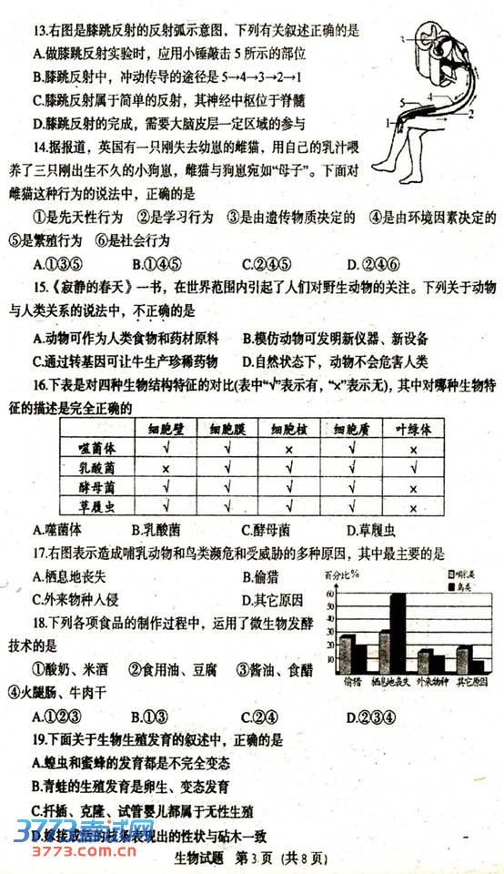 [组图]2013泰安中考生物答案评分标准(含试题)