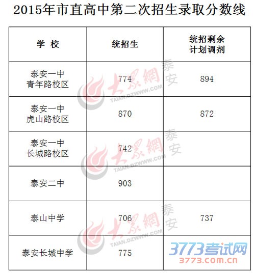 2015泰安一中长城路校区统招生分数线