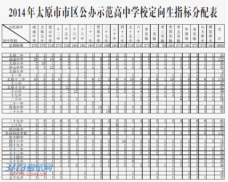 县(市、区)属公办示范普通高中学校按照2014年普通高中招生计划(不含择校生)的40%确定定向生招生名额。