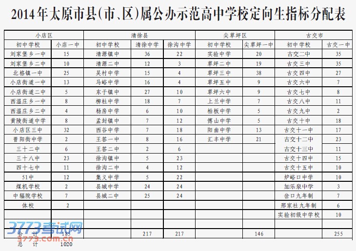县(市、区)属公办示范普通高中学校包括:清徐中学、徐沟中学、小店一中、尖草坪一中、古交一中。