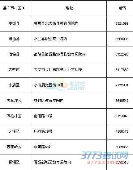 三、各县(市、区)招生考试办公室(管理中心)地址、电话。