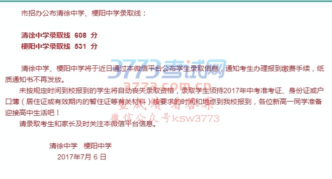 市招办公布清徐中学、梗阳中学录取线: