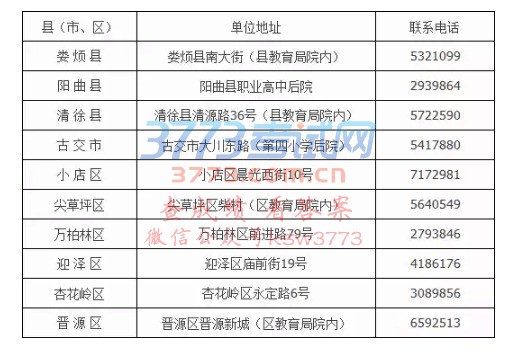 9太原市各县(市、区)招考办(考试中心)地址、联系电话。