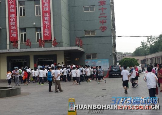 8点45分,在12中考点参加中考的考生开始进入考场 记者郭雪 摄