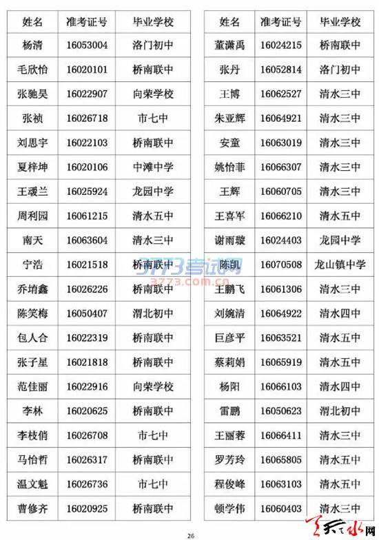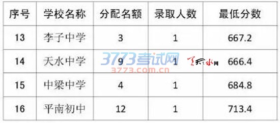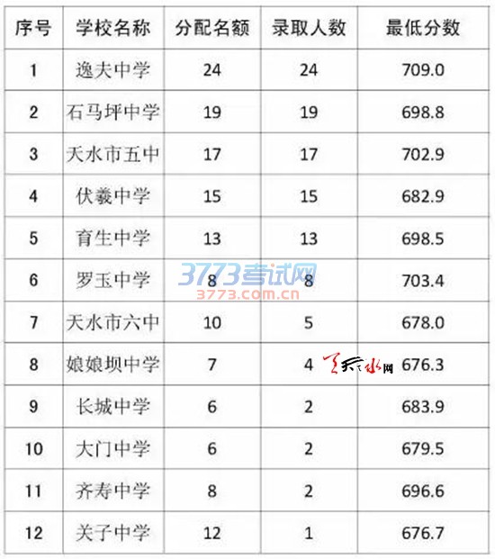 2、按中考成绩从高到低排序,从麦积区和五县其余考生中录取400人,最低分数为688.1分。