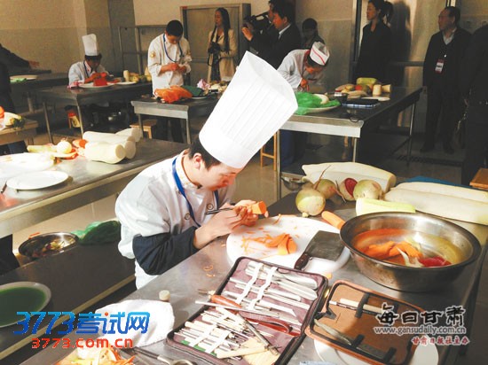 烹饪专业的学生在比赛果蔬雕刻。本报首席记者魏娟摄