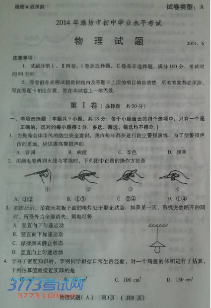 [组图]潍坊市2014年中考物理试题发布
