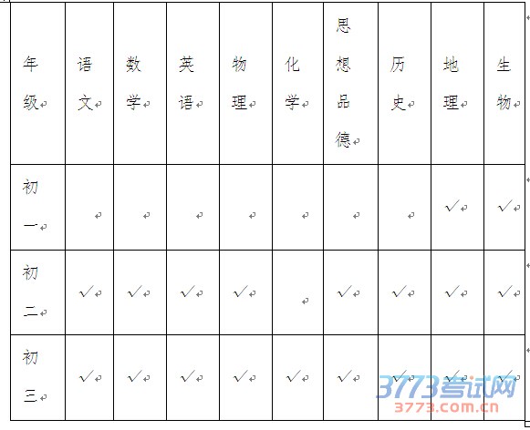 为推动学生自主学习,继续为学生提供多次考试和提前考试的机会。初中各年级学生可以参加考试的文化课科目见下表。