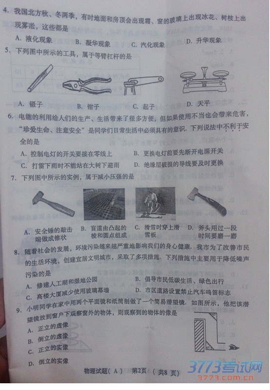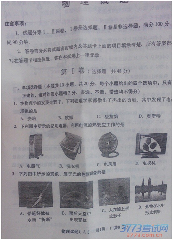及时公布南充中考试题、答案和中考作文。祝各位考生都能取得好的成绩。2015山东潍坊市中考物理试题:
