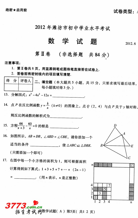 [组图]2012年潍坊市中考数学试题及答案