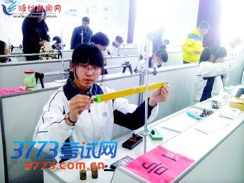 4月15日上午,潍坊新华中学初三学生在进行实验技能操作模拟考试。