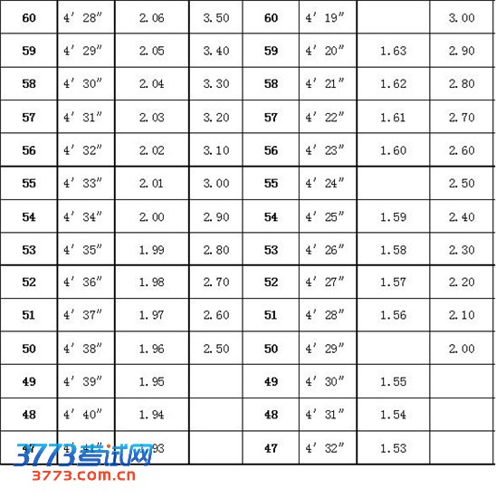 3.采用站立式起跑。测试时不准穿钉子鞋。