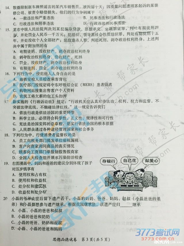 [组图]2015武汉中考思想品德试题发布