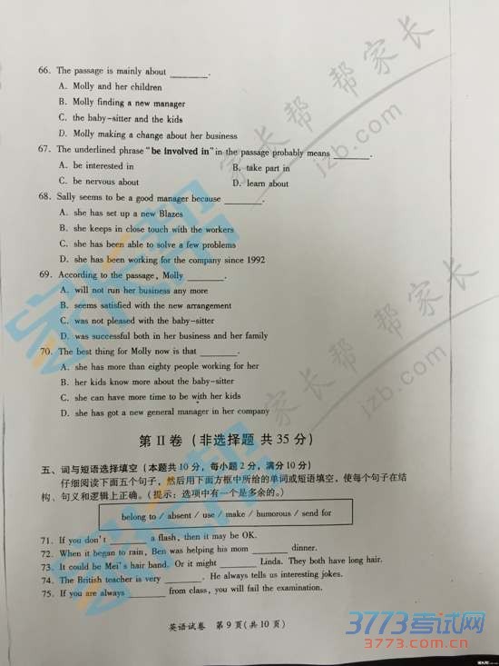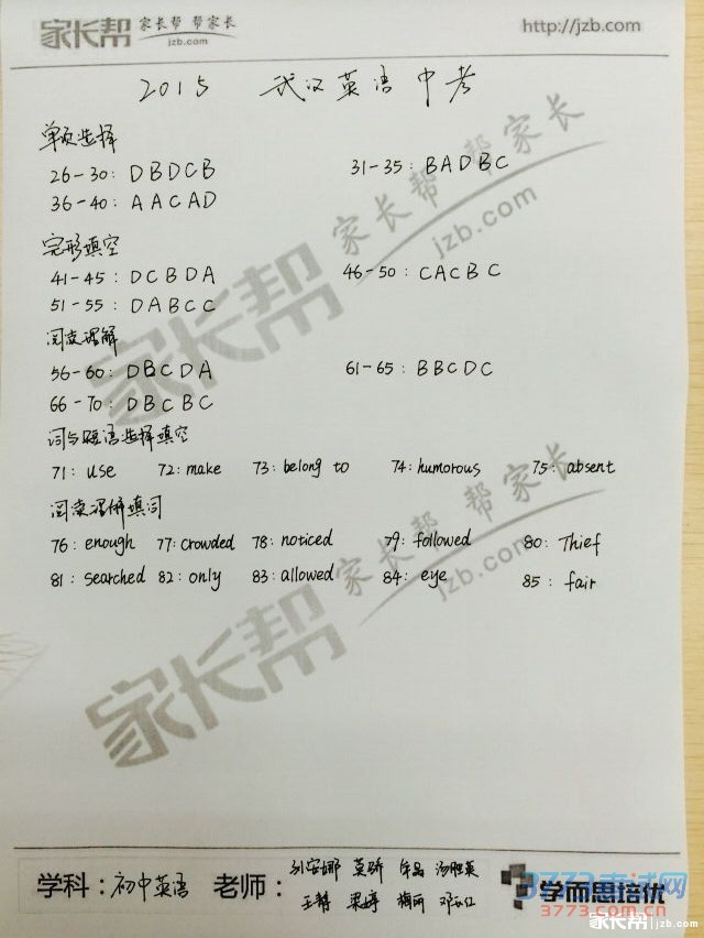 [组图]2015年武汉中考英语试题及答案发布