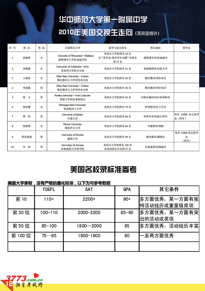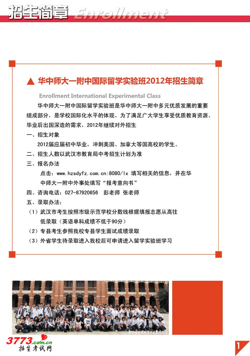 华师一附中2012出国留学实验班招生简章及网上信息采集
