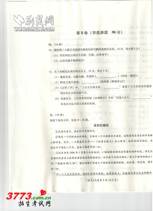 [组图]2012武汉中考语文试卷及答案