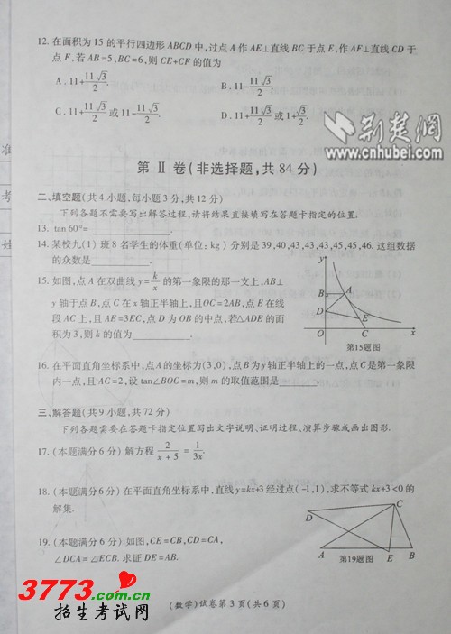 [组图]2012武汉中考数学试卷及答案