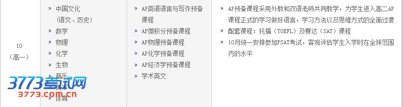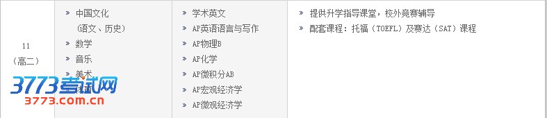 强强联合,精英教育:有机融合国内优质高中教学体系和美国AP课程,一方面由武汉外国语学校特高级名师教授国内高中课程,保持了中国学生在数理化学习方面的优势,保证了学生对中国文化的传承;另一方面,其直属的国际教育经验丰富的武外英中承担所有AP课程的教学,更好地对接海外精英高等教育体系对专业知识、个人能力、人文修养方面的培养需求。同时,托福、赛达课程贯穿学习始终,各项国际课程考试时间安排科学合理,帮助学生最大限度的取得优异成绩。该班学生将从我校2013年高一指令生及三限生中进行选拔,国内国际课程双班主任负责制,独立编班并纳入外校常规管理。