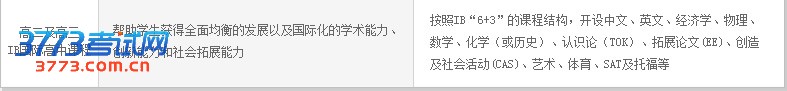 | 该实验班适合学术成绩优异,发展全面,学习动力强,基础扎实,愿意接受挑战,英语能力好,且自愿放弃国内高考而就读海外顶尖大学的优秀学生。 2013年IB国际实验班计划招收额定为30名,所有学生将在我校2013年高一新生中测试选拔,择优录取。获得全国性或省市级学科竞赛奖或有显著特长的学生请提供相应的证书说明。。 | ||||||