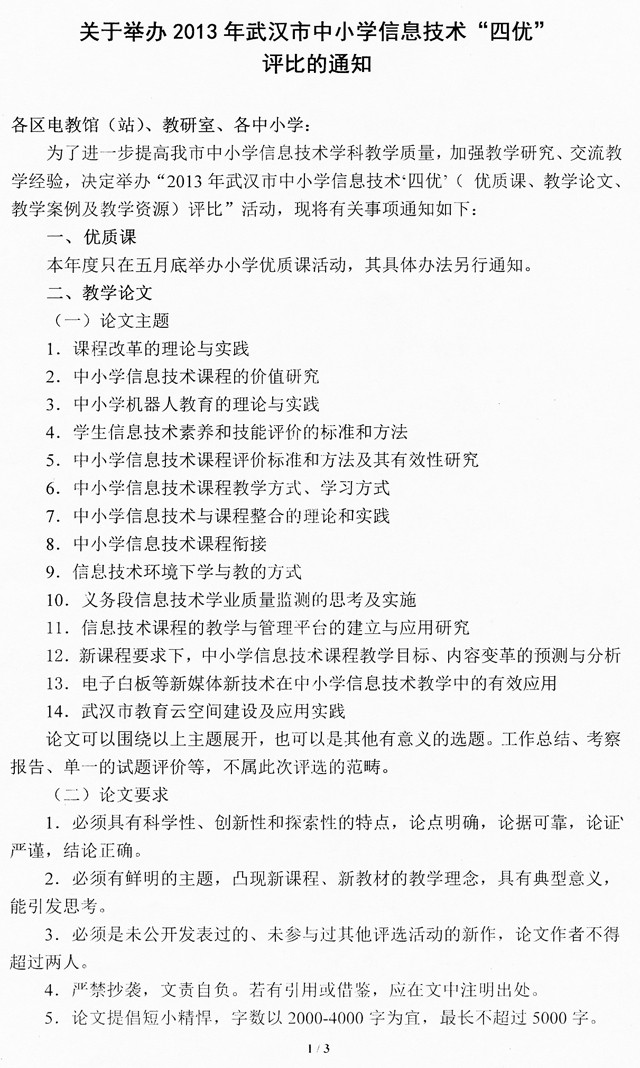 [组图]关于举办2013年武汉市中小学信息技术四优评比的通知