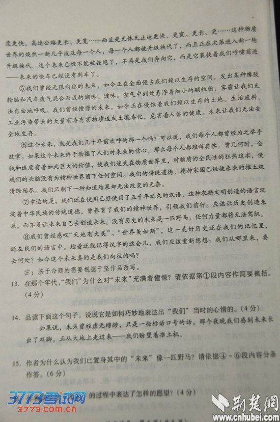 [组图]2013年武汉中考语文试卷答案发布