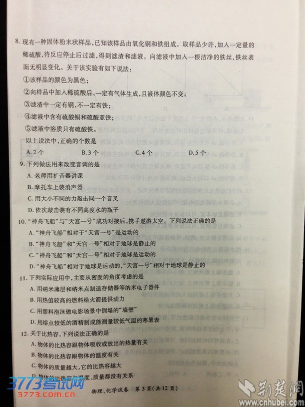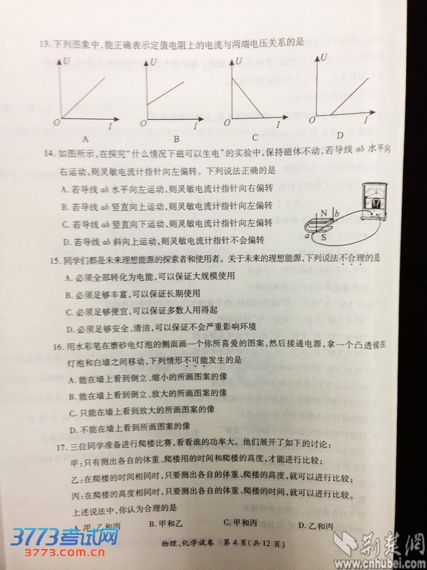 2013年武汉市中考试卷(物理化学及答案)第四页