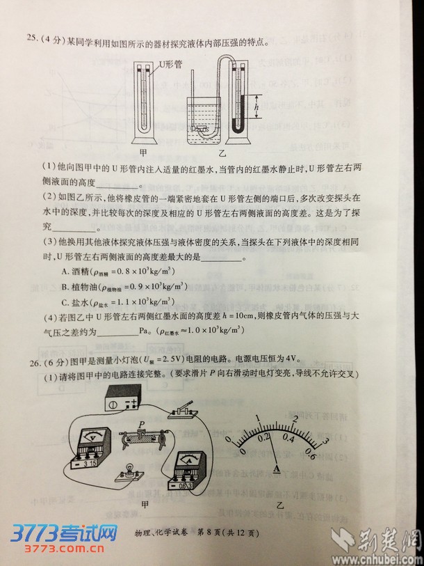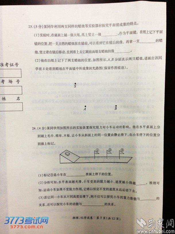 [组图]2013武汉中考物理化学试卷及答案发布
