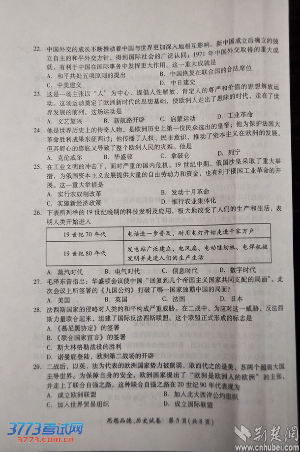 2013年武汉市中考试卷(历史思想品德及答案)第五页