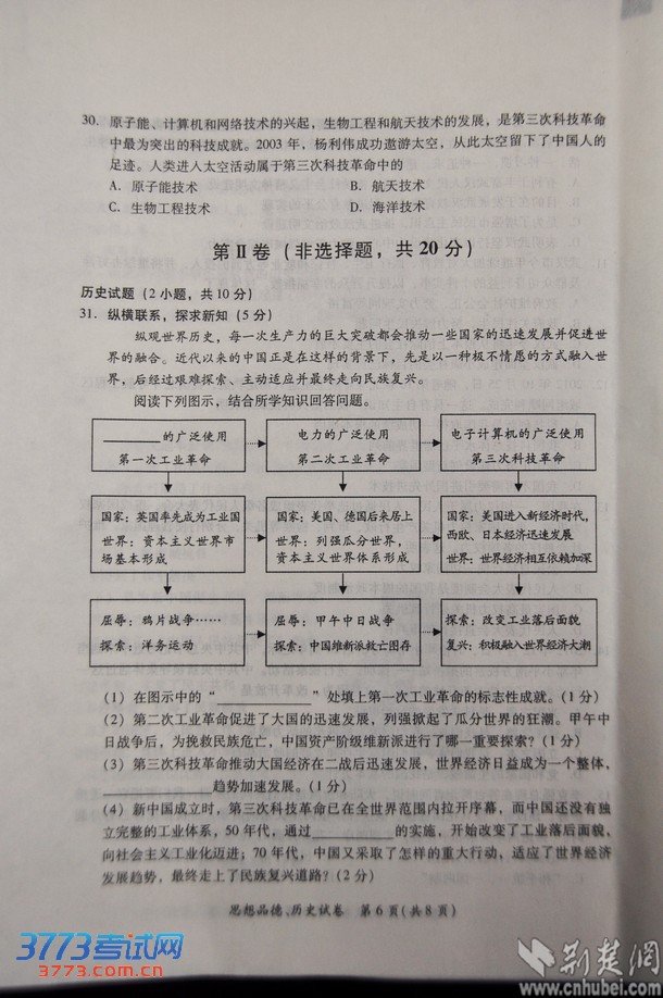 2013年武汉市中考试卷(历史思想品德及答案)第六页