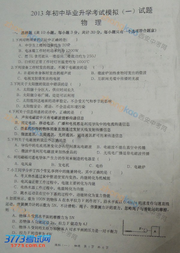 本网特收集高新一中模拟试题,供西安市考生学习和参考!