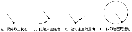 10、小丽同学通过上面的探究学习,思考了一个问题:当自己荡秋千运动到右侧最高点时,如果自己受到的力全部消失,自己将会处于怎样的运动状态呢?她做出了以下猜想,你认为其中准确的是( ▲ ).(图中的黑点表示小丽同学)