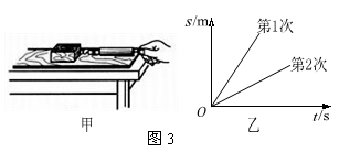8、如图3甲所示,小明用弹簧测力计拉木块,使它在木板上沿水平方向匀速滑动,图乙是他两次拉动同一木块得到的距离随时间变化的图像.下列说法正确的是( ▲ )