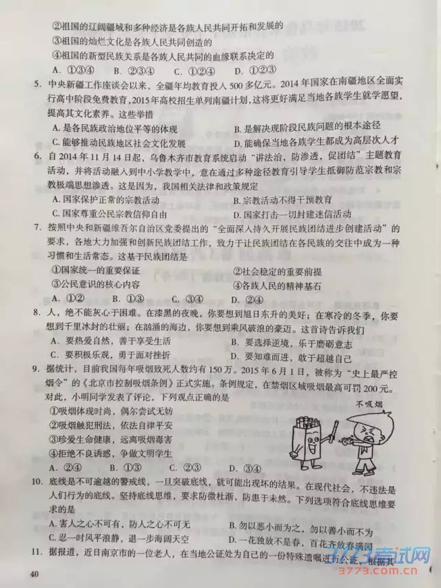 公布新疆中考试题、答案和中考作文。祝各位考生都能取得好的成绩。2015年新疆中考政治试题及答案(图片版):