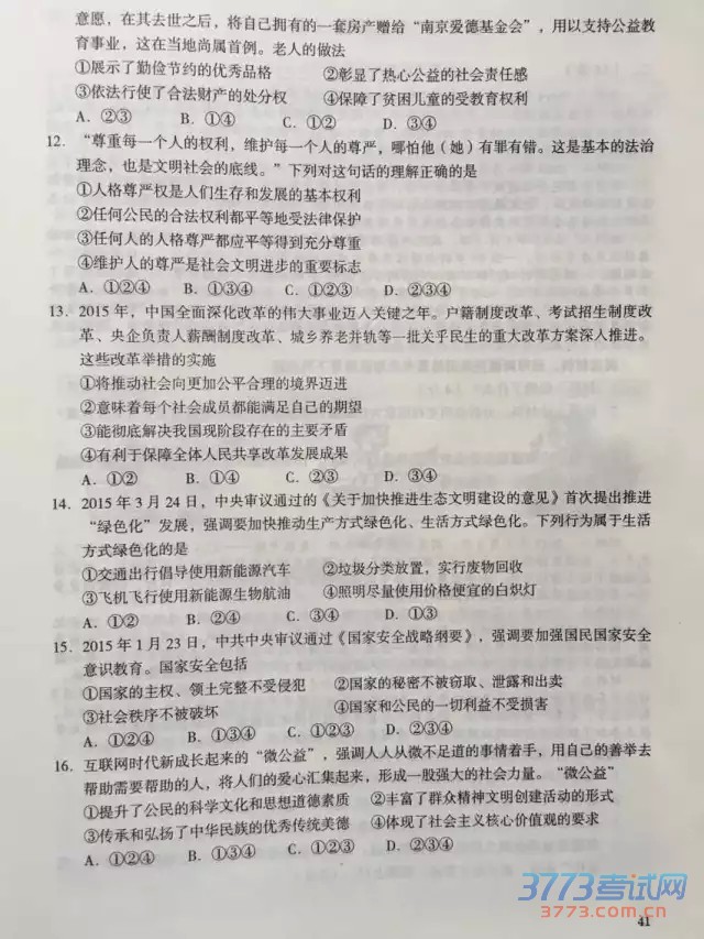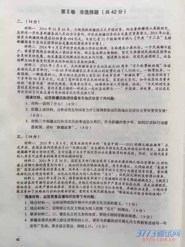 [组图]2015乌鲁木齐中考政治历史试卷及答案评分标准