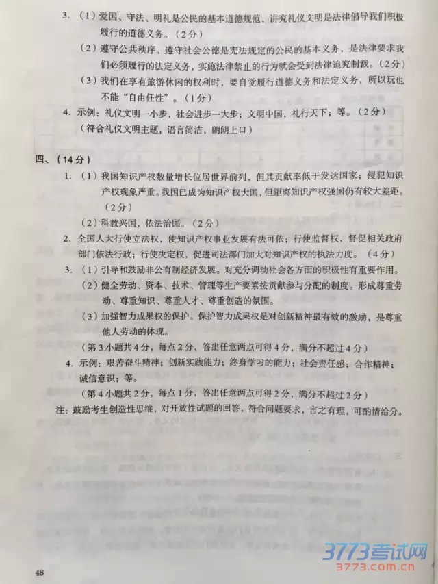 [组图]2015乌鲁木齐中考政治历史试卷及答案评分标准