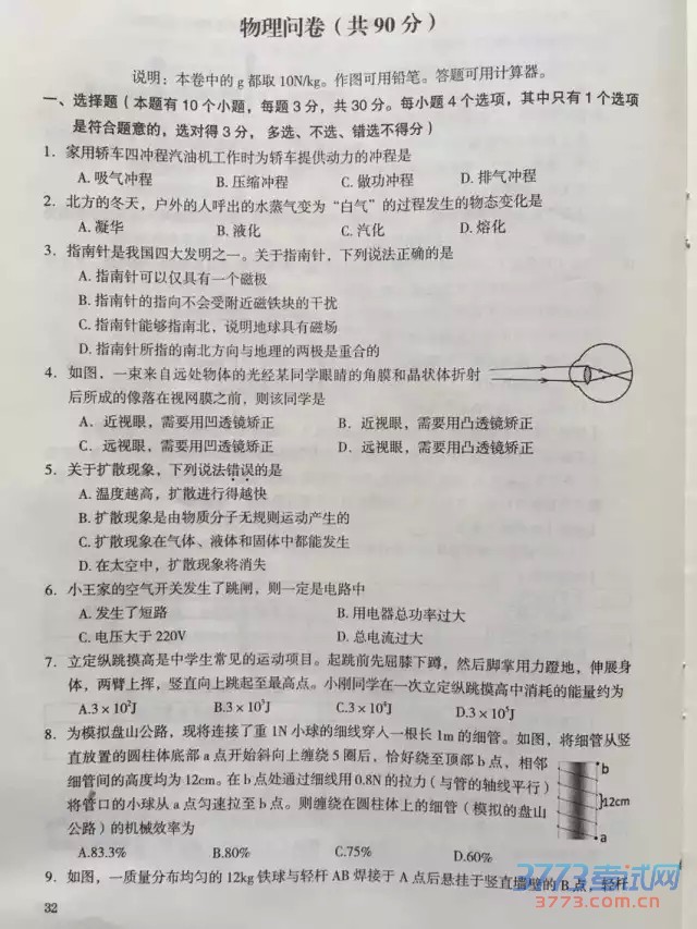 公布新疆中考试题、答案和中考作文。祝各位考生都能取得好的成绩。2015年新疆中考物理试题及答案(图片版):