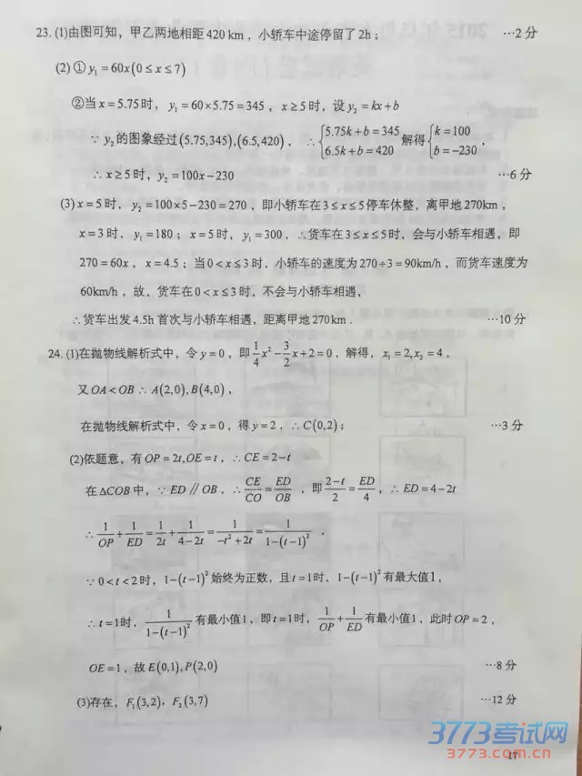 [组图]2015乌鲁木齐中考数学试题及答案评分标准