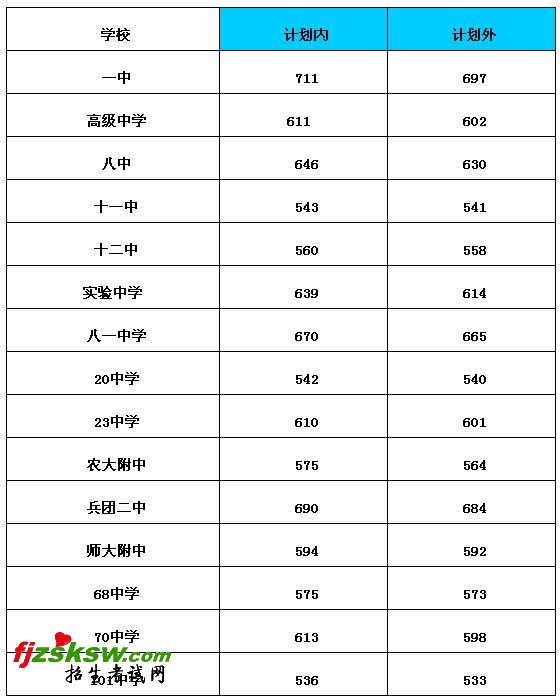 乌鲁木齐市2010年普通高中一批次各学校录取分数线公布如下: