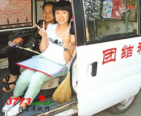图为考生赵靖雯(右一)乘车准备前往考场。