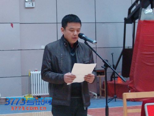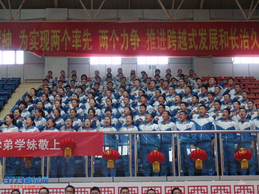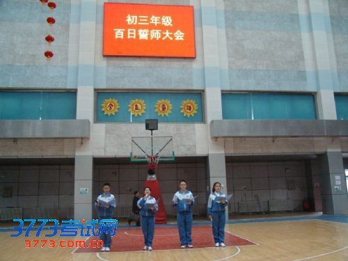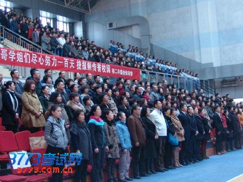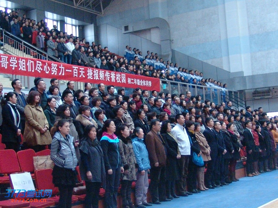 大会在庄严的国歌声中开始。首先由兵团二中校领导致辞,郑祖武副校长先以兵团二中2013届高三提前获取北大清华等一流大学保送资格及校长推荐资格的学长学姐为例,激励同学们努力拼搏,向他们学习,考上理想的学校。随后教师代表李英华老师和家长代表初三(3)班许伊蒙的母亲相继发言,给同学们扬士气,鼓斗志,并对百日内的学习生活提出中肯的建议,要求学生们从明确目标、坚定信心、顽强斗志、讲究方法、调适心态等多个方面确保百日复习有高效性。
