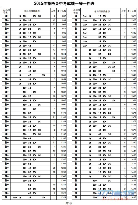 [组图]2015年梧州苍梧县中考成绩一等一档表
