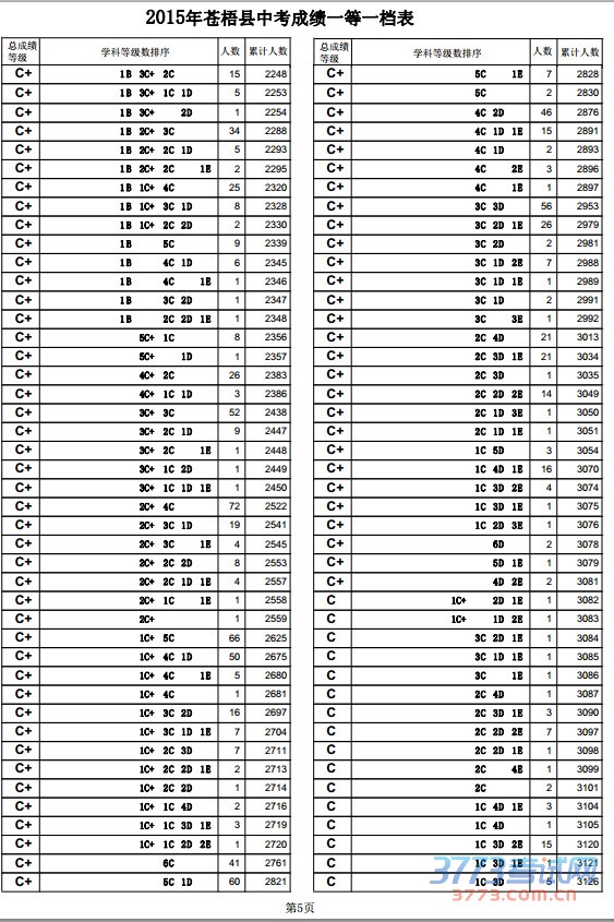 第5页2015年苍梧县中考成绩一等一档表
